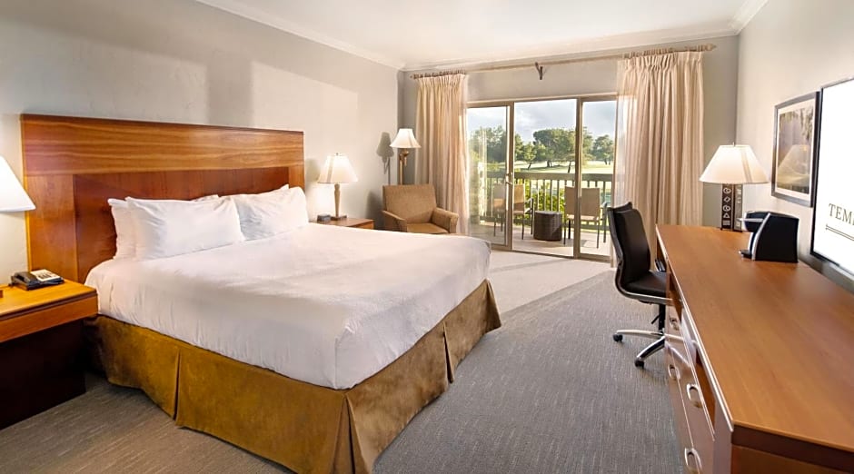 This room offers views of the golf course from the private balcony. The room also features a refrigerator, double vanity, gourmet coffee, ironing board, hair dryer, remote control cable TV, and high speed internet access. These accommodations are centrally located on the property which provide ease of access to the Cork | Fire Kitchen and steps away from the Pro Shop.